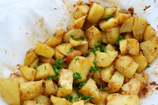 Scoatem cartofii din cuptor si presaram patrunjelul tocat marunt.
