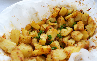 Curatam, spalam si taiem cartofii cuburi nu foarte mari.