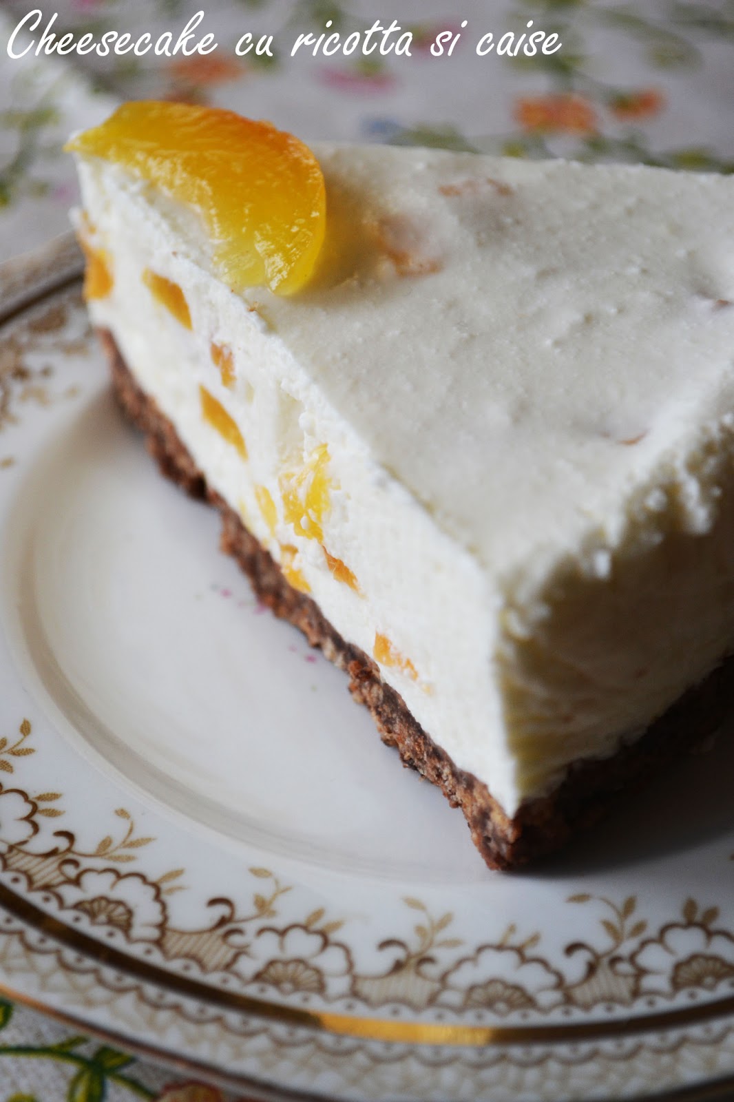 Noul an a venit in bucataria mea cu un desert nou; unul inscris pe lista mea de incercari de foarte multa vreme, dar pe care l-am tot amanat si asta din cauza ca nu prea mancam deserturi cu branza…in afara de papanasi. Insa cum aveam in frigider o cutie de ricotta mi-am facut curaj sa pregatesc un cheesecake siiii surpriza: ne place chiar foarte mult si deja am in minte mai multe viitoare combinatii. Azi l-am facut cu caise din compot, insa vreau musai sa incerc cu ananas si fructe de padure…si multe altele.
