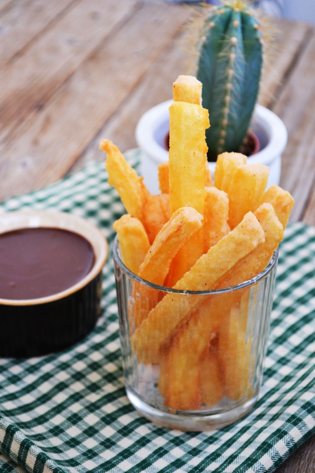 Intr-o tigaie sau cratita se incinge ulei pentru prajit (este de preferat sa fie o baie de ulei). Aluatul se pune intr-un pos si se formeaza churros de cca 10 cm (sau mai mici) direct in tigaie. Va puteti folosi de o foarfeca pentru a taia aluatul, iar varful posului e de preferat sa fie in forma de stea.