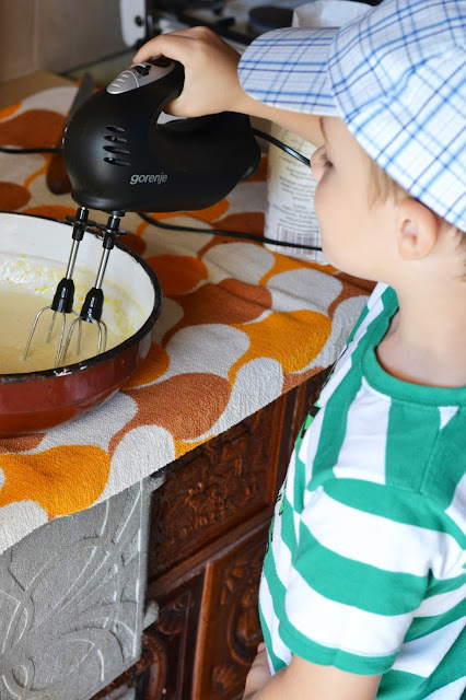 Andrei si Tudor, nepotii cei mai mari, sunt si ei atrasi de bucatarit, iar daca vorbim despre ceva dulce … ei bine, sunt cuceriti total. Dealtfel, noi trei am mai bucatarit impreuna niste minunate placinte (click aici ca sa ne vedeti in actiune).