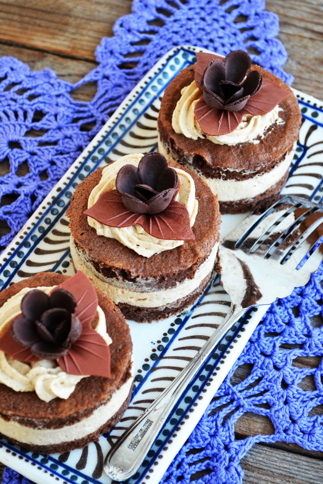 Eu am ales sa pregatesc mini torturi, insa la fel de bine puteti coace un blat rotund/patrat mai grosut pe care sa il taiati in doua si sa il umpleti cu crema. Eu am avut cercurile metalice cumparate de ceva vreme si mi s-a parut numai buna ocazia aceasta pentru inaugurarea lor. Am folosit esenta de menta deoarece imi place combinatia de cacao+cafea+menta. La fel de bine puteti folosi esenta de rom sau vanilie.