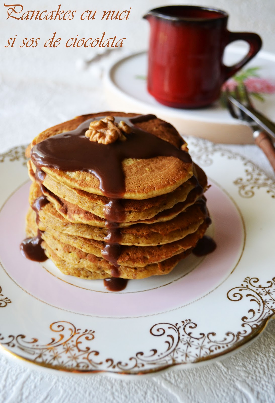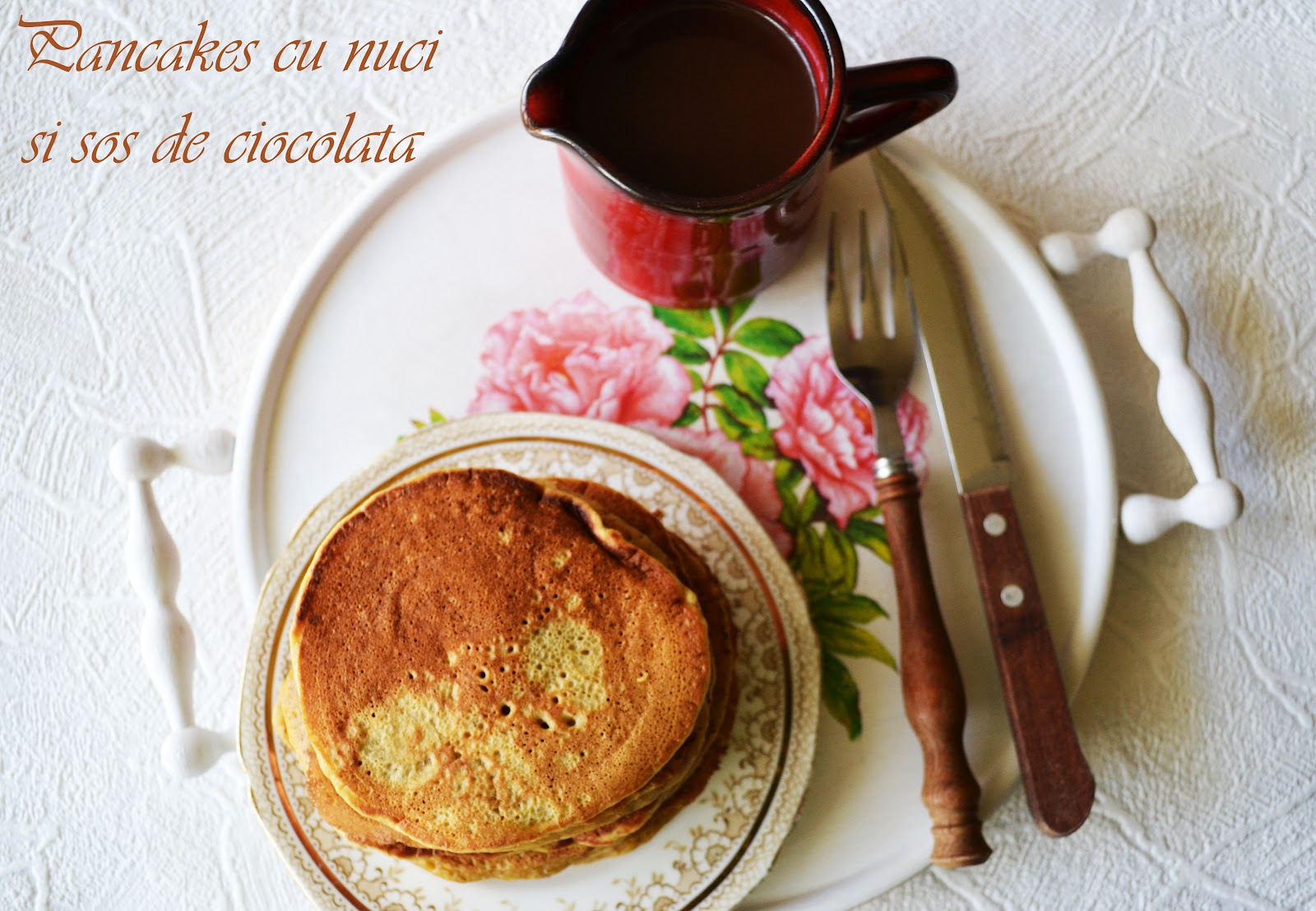 Cu drag va recomand sa incercati si reteta de mai jos, minunatele clatite americane cu nuci. Eu am facut un sos de ciocolata pentru ele, insa la fel de bine le puteti servi alaturi de fructe, miere, dulceata sau alte sosuri dragi voua, la micul dejun sau la desert.
