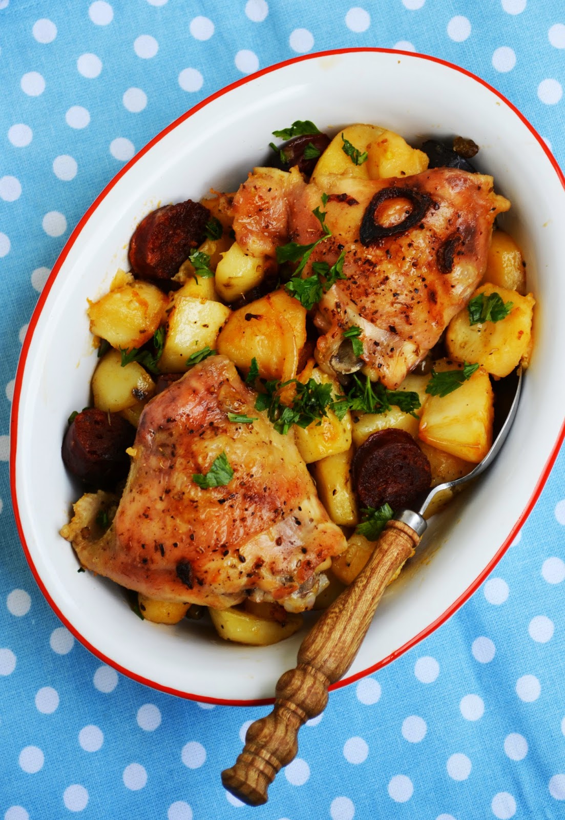 In clasamentul meu de carnuri (caci am asa ceva), puiul este pe locul 2 (pestele ocupa primul loc) si incerc sa il gatesc in cat mai multe moduri posibile (mai multe retete cu pui gasiti aici). Azi am incercat o reteta a la Nigella Lawson, de cartea careia ma bucuram in postarea aceasta, o reteta plina si bogata in arome (ca doar e a la Nigella). Este o mancare perfecta pentru zile friguroase cand iti vine da stai in casa la caldura, sa mananci ceva gustos si sa nu faci nimic altceva. Eventual sa citesti o carte frumoasa. Sau sa te cuibaresti in varful patului cu patura trasa pana sub nas si sa te uiti la o comedie.