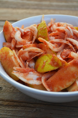 Chiar daca nu suntem in sezonul gutuiolor, inca se mai gasesc in supermarketuri. Asa ca am profitat de delicioasele fructe si le-am gatit alaturi de un pui de casa. Puteti pregati puiul acesta si acum de sarbatori, fiind o mancare destul de usurica.