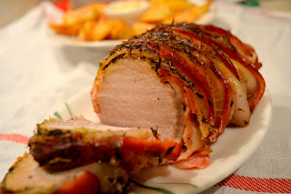 Insa, reteta pe care am ales-o nu este o reteta de ceva dulce, ba dimpotriva este de ceva iute si sarat, suculent si aromat. Asadar am ales reteta de pulpa de porc in bacon. Mi-a fost foarte greu sa aleg numai o reteta; la primul ochi aruncat pe blog am salvat in jur de 10 retete din care sa aleg, iar aceasta pe care am preparat-o nu este din cele 10 deoarece au urmat alte topuri de retete 🙂 Pana la urma m-am decis! O friptura absolut delicioasa, cu o aroma deosebita.