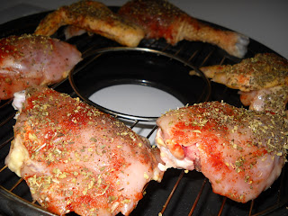 Pulpele se spala si se ung cu o pensula cu miere. Se condimenteaza cu sare, piper si boia si se presara busuioc.