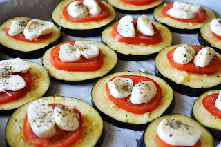 Vinetele se spala foarte bine si se feliaza in felii de grosimea unui deget. Rosiile se spala si ele si se feliaza (mai subtire decat vanata). Se amesteca ulei de masline cu cuturoi pisat, sare si piper. Se unge fiecvare felie de vanata cu acest amestec, se aseaza in tava de cuptor si deasupra se pune cate o felie de rosie, apoi mozzarella. Se presara putin cimbru si putin busuioc si se da tava la cuptor cca 20 de minute (pana cand vanata este moale si mozzarella topita si aurita pe deasupra).
