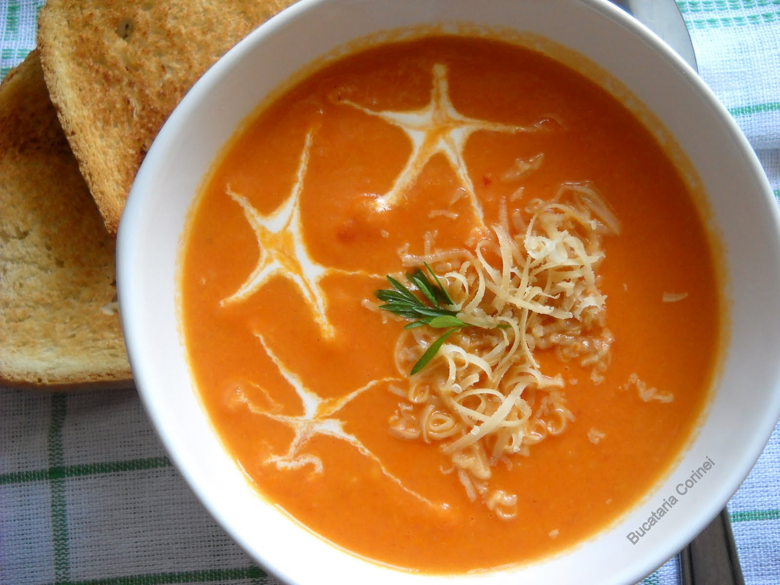 Eu sunt cu mancarea chinezeasca, 2 ani de zile numai asta am mancat de nu as mai fi vrut sa vad si acum ce-i mai duc dorul :)-asta era pentru Anda :). In fine, nu de asta am trecut pe aici. Am trecut de fapt sa te felicit pe tine Corina pentru varietatea de mancaruri pe care le impartasesti cu noi si pentru cum arata. Imi place in special aceasta supa crema de rosii, pe care am sa o incerc cu prima ocazie. Inca o data, felicitari!